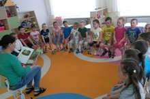 Матур әдәбиятка кызыксыну уяту, сөйләм телен үстерү,сүзлек запасын баету максатын күзаллап, уземнен эшемдә режим вакытларында еш кына балаларга бик кызыклы, эчтәлекле матур әдәбият(әкиятләр, кызыклы хикәяләр) укыйм. Әкиятләрне, хикәяләрне укыганда балалар бик теләп, кызыксынып, игътибар белән тыңлыйлар. Матур әдәбият аша балаларны сорауларга тулы җавап бирә бирергә, әкият аша геройларның кылган эшләренә дөрес бәя белергә, бәйләнешле сөйләм телен, фикерләү сәләтен , сүзлек запасын баетабыз.Әкият аша балаларда шафкатьлелек, миһербанлылык, дуслык, гаделлек, әдәплелек хисләре һәм китапка мәхәббәт тәрбиялибез. Балалар белән әкиятләрне укып яисә сөйләп кенә калмыйбыз, ә сәхнәләштерәбез дә.