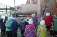 Дети средней группы «Соловьи» очень наблюдательные. Этих маленьких «почемучек» интересует все происходящее вокруг. Сегодня во время прогулки они с интересом наблюдали за машиной, стоящей возле кухни. После тщательного осмотра выяснили, что машина привезла продукты в детский сад, из которых повара будут готовить ребятам вкусный обед. Далее дети продолжили наблюдения за проезжающим автотранспортом.