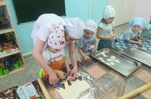 Сегодня воспитанники второй младшей группы "Самоцветики" познакомились с профессией повара. Воспитатель Ханнанова Х. М. совместно с поваром Кирилловой М.В. рассказывали о профессии и предметах, необходимых для его работы. Но больше всего детям понравилось под руководством Марины Валерьевны изготовлять печенье. Дети творчески вырезали тесто из различных фигурок, рассуждая полученных из формочек печенье, проговаривали свои мнения о полученных формах. А затем они сами потом попробовали своё искусство.