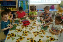 Вот и сегодня вечером каждый ребёнок выбрал себе занятие по душе. А часть ребят помогали в изготовлении атрибутов (конфет) для нашего продуктового магазина.