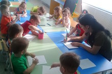 Развитие мелкой моторики в 1 младшей группе «Жемчужинки» уделяют большое время. Воспитанники учатся лепить, играют в пальчиковые игры, но, а самое интересное это - рисование.
