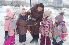 Люди давно уже придумали, как помогать зимовать птицам, без которых вредители опустошат весной и летом любое крестьянское хозяйство. «Покорми птиц зимою - они послужат тебе весною» - говорит русская пословица. Вот почему с давних времен на Руси для зимующих птиц люди делали кормушки. Если зимой повесить на садовом участке кормушки и подкармливать птиц, летом они отблагодарят вас сторицей. Вот и в нашем детском саду прошла акция "Кормушки для пичужки". Воспитанники старшей группы вместе с педагогом развесили кормушки изготовленные родителями, и теперь всю зиму дети будут подкармливать наших пернатых друзей.