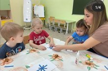 Сегодня дети 1 младшей группы Золотые зернышки, на занятии познакомились с миром птиц, уточняли представление о внешнем виде. После всего интересного дети приготовили для ворубуше корм , учились самостоятельно прикреплять пластилин на всей поверхности листа, на расстоянии друг от друга.