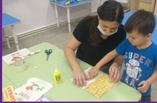 Русская культура не мыслит без народных художественных промыслов. Городецкая роспись — гордость русских народных промыслов. Эти чудесные орнаменты не спутаешь с другими. Краски здесь яркие и сочные, прекрасные цветы с резными листьями, изящные птицы и лошадки словно перенеслись со страниц сказок. Сегодня в подготовительной группе Жемчужинки прошло увлекательное занятие по декоративному рисованию. Ознакомившись с характерными особенностями Городецкой росписи и ее мотивами, и превратившись в умелых мастеров по украшению посуды, дети с удовольствием взялись за роспись разделочной доски. И у них это отлично получилось.