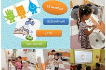 Всемирный день чистых рук проводится именно 15 октября. В нашем детском саду в этот день воспитатели провели с детьми беседы о том как мытье рук влияет на здоровье.В целях привлечения внимания к своевременному и правильному мытью рук с мылом, которое является одним из самых эффективных доступных способов предотвращения острых инфекций и других заболеваний.