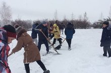 Сегодня активисты нашей школы вышли на уборку территории от снега.