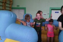 Сегодня очень жарко и все воспитанники приняли участие в Празднике " День Нептуна" Участники конкурса из трёх бутылок с водой набирают её в рот и на асфальте пишут слово «Нептун». Побеждает тот, кто это быстрей и лучше сделает.