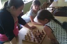 В пришкольном лагере ребята соревновались в игре по шахматам. Победила Голованова Т