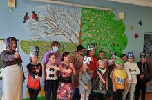Воспитанники лагеря "Солнышко" перед детьми детского сада "Колосок" выступили с театрализованными выступлениями "Колобок" и "Репка"????