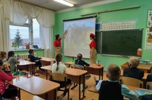 11 ноября 2020 года ученики 9 класса провели для начальных классов МБОУ "Поручиковская ООШ" классный час в рамках акции "Есть такая профессия - Родину защищать"