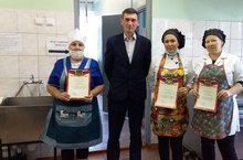 Сегодня директор школы Ринат Раисович поздравил работников столовой с профессиональным праздником -Днем повара! пожелал, здоровья, благополучия и творческих успехов