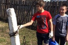 Учащиеся 6,7,8 классов приняли участие в благоустройстве села. Ребята белили деревья и столбы.