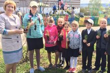 Учащиеся начальных классов приняли участие в Акции " Сады Победы" Ребята посадили на территории школы сосны