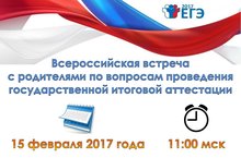 15 февраля в Рособрнадзоре состоится Всероссийская встреча с родителями по вопросам ЕГЭ-2017 25.01.2017