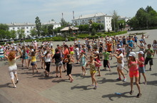 Море позитива и колоссальный заряд бодрости получили участники танцевального флэшмоба, который был организован для воспитанников лагерей с дневным пребыванием детей на базе МБОУ ДОД "Дом детского творчества". В творческой акции отчетливо проявился общий настрой на конкретное дело, была видна синхронность движений всех участников. Именно язык танца как нельзя лучше показывает единение, устремление ребят к решению общей задачи.