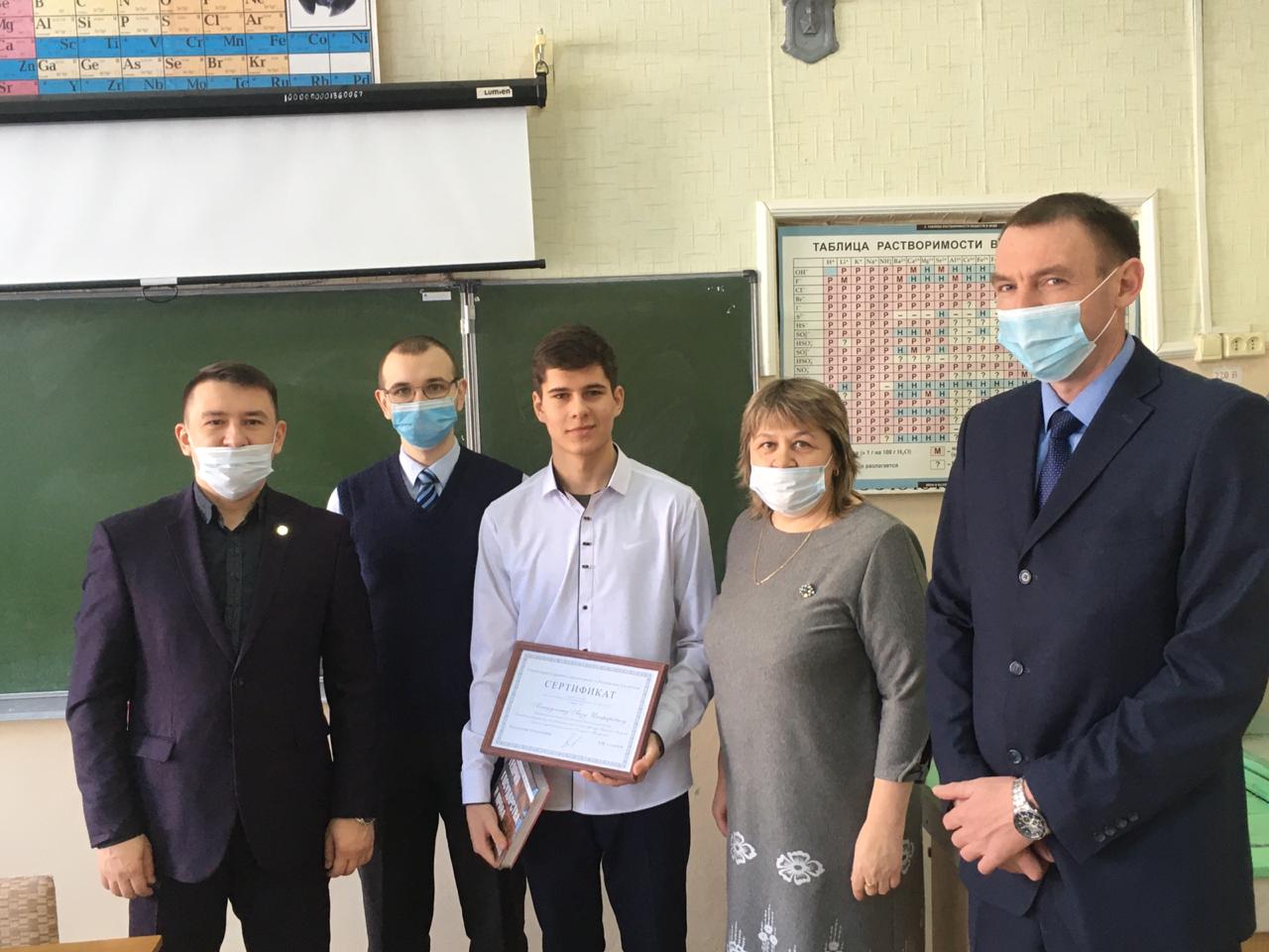 В ноябре 2020 года среди обучающихся школ Заинского муниципального района прошел конкурс сочинений, приуроченный ко Дню юриста. Целями конкурса является расширение и углубление знаний законодательства РФ; формирование правово грамотности, воспитание правовой культуры учащихся; повышение эффективности самостоятельной исследовательской работы учащихся в сфере права; воспитание гражданственности и патриотизма детей и молодежи. По результатам конкурса 20 февраля 2021 года в МБОУ «Бегишевская СОШ» побывал мировой судья Поляков Д.С. для вручения сертификата и подарка ученику 9 класса Асхадуллину Аяза. Дмитрий Сергеевич поздравил и поблагодарил участника конкурса. фото1