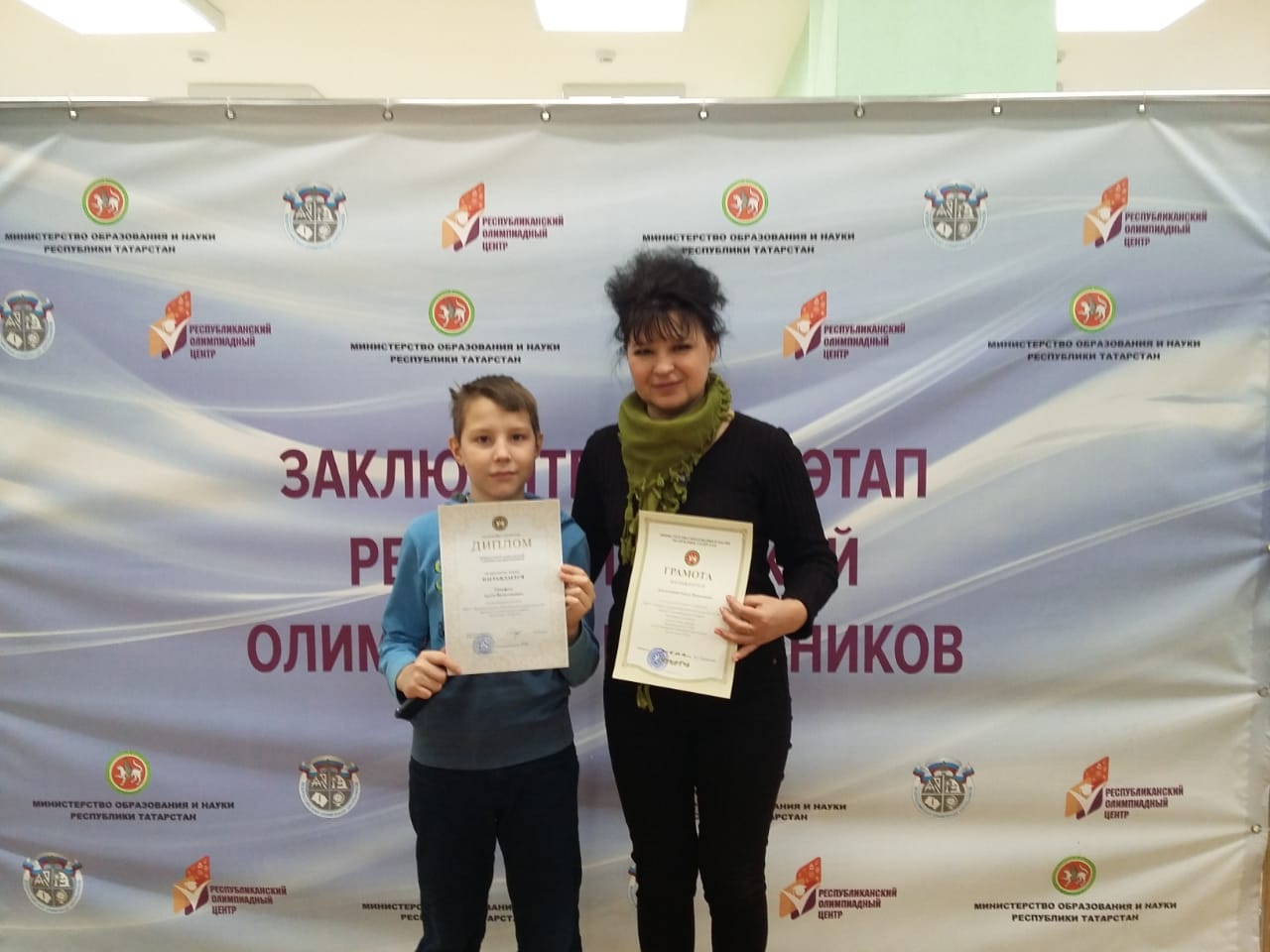 С 28 по 30 января 2021 года на базе оздоровительно – образовательного комплекса «Дуслык» ГАОУ «Республиканский олимпиадный центр» проведен заключительный этап республиканской олимпиады школьников по русскому языку для обучающихся 4 - 8 классов общеобразовательных организаций Республики Татарстан. По итогам участия в олимпиаде призёром стал Тимофеев Артём, обучающийся 4 класса МБОУ «ЗСОШ №4».Учителя, подготовившие призёра заключительного этапа республиканской олимпиады школьников по русскому языку: Дмитриева Лариса Петровна, педагог дополнительного образования МБУДО «ЦДООД-МАНШ», Давлетшина Ольга Вадимовна, учитель начальных классов МБОУ «ЗСОШ №4. Фото