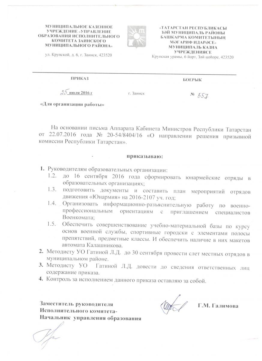 Приказ УО от 25.07.2016 №557 "О решении призывной комиссии"