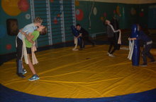Секция борьбы продолжает свою работу во время весенних каникул. Ребята готовятся очередным соревнованиям по борьбе. Они знают, что только с усердной тренировкой приходит победа на соревнованиях.