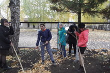 Сегодня в нашей школе состоялся средник. Обучающиеся 9 класса убирали территорию от мусора и опавших листьев.