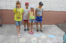 Кояш та күрсен дип балалар рәсемнәрен асфальтка ясадылар.