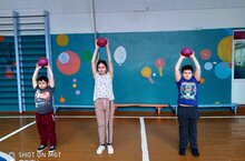 Во время зимних каникул учащиеся с желанием посещают школьный спортивный клуб «Луч». Они изучают новые общеразвивающие упражнения с набивными мячами.