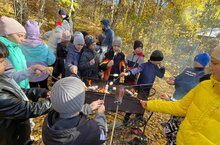 Во время осенних каникул ученики нашей школы с родителями и учителями ходили на экскурсию в лес.