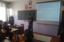 Сегодня в 9 классе прошел классный час на тему: "10 декабря - День прав человека". 69 лет назад Генеральная Ассамблея Организации Объединенных Наций утвердила «Всеобщую декларацию прав человека». Эту декларацию называют еще Хартией прав человека. Выступление подготовил ученик 9 класса.