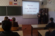 5 декабря в день воинской славы России в 9 классе прошел классный час на тему: "Битва под Москвой", посвященной 76 годовщине начала контрнаступления советских войск под Москвой. Выступление подготовил ученик 9 класса Романов Р.