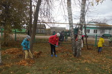 И снова ребята вышли на уборку листьев вокруг школьного двора.