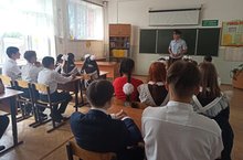 03 сентября прошел Единый республиканский урок с приглашением участкового уполномоченного полиции Шагавалиева А.Г.. Он объяснил правила поведения при общении с незнакомыми людьми, о действиях при обнаружении незнакомых предметов, если обнаружили такой предмет, то ни в коем случае самому не трогать, позвонить в 112 и сообщить. Также объяснил о последствиях по "ложным звонкам".