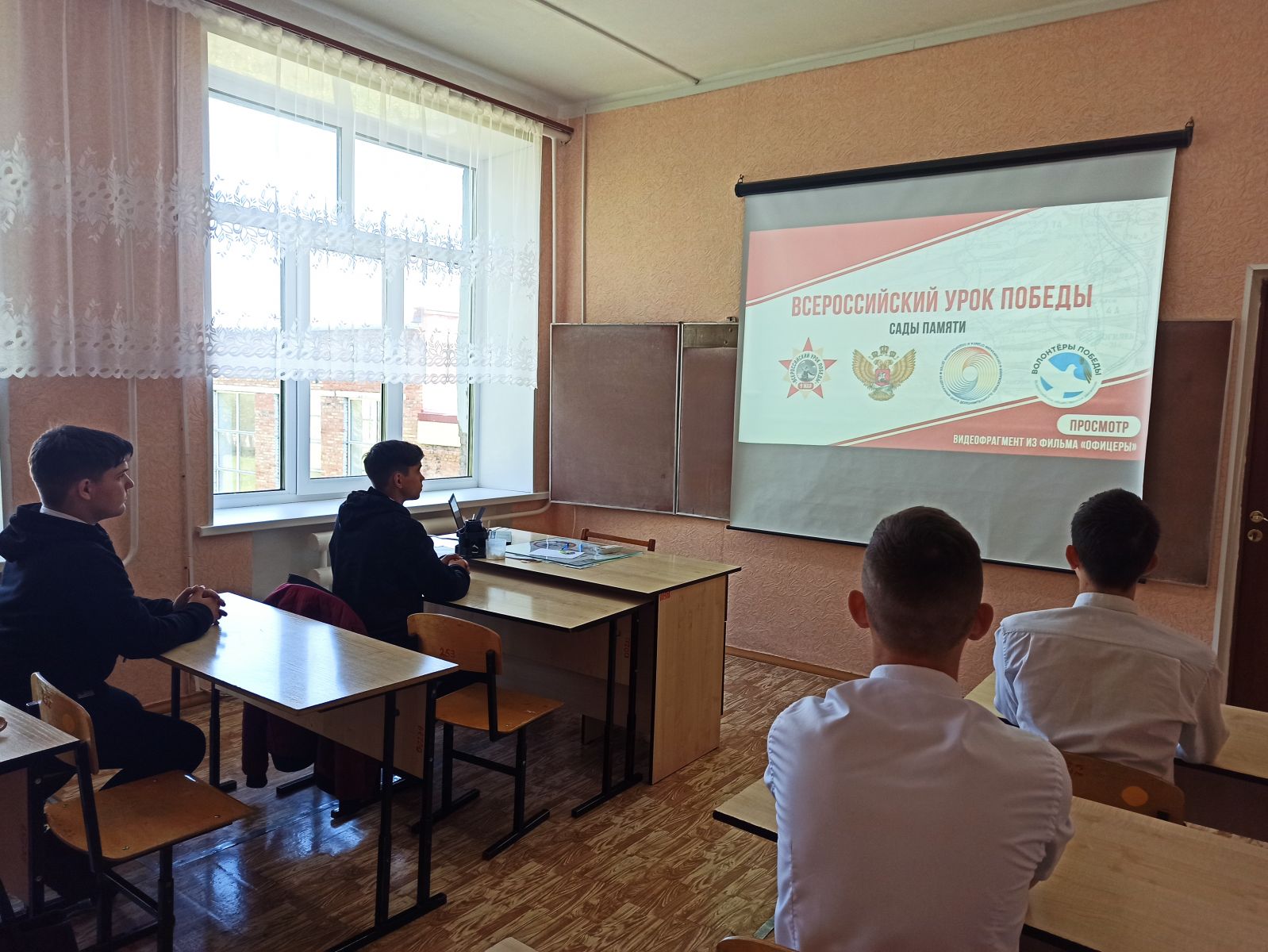 В ходе урока познакомились с Международной акцией «Сад памяти», призванной увековечить память о погибших героях Великой Отечественной войны и солдат, защищавших честь и достоинство своей Родины. В завершении урока посмотрели тематический видеоролик.