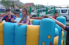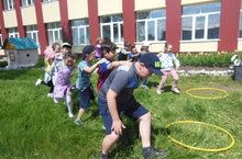 Сегодня к нашим ребятам приехал кинотеатр "Космос". Работники кинотеатра установили батут, провели развлекательное мероприятие, а также показали интересный мульфильм. Затем воспитатель пришкольного лагеря "Чемпионы" организовали конкурс рисунков на асфальте «Как прекрасен этот мир!», спортивные состязания на свежем воздухе «Весёлые старты», а также провели беседу: «Осторожно, огонь!».