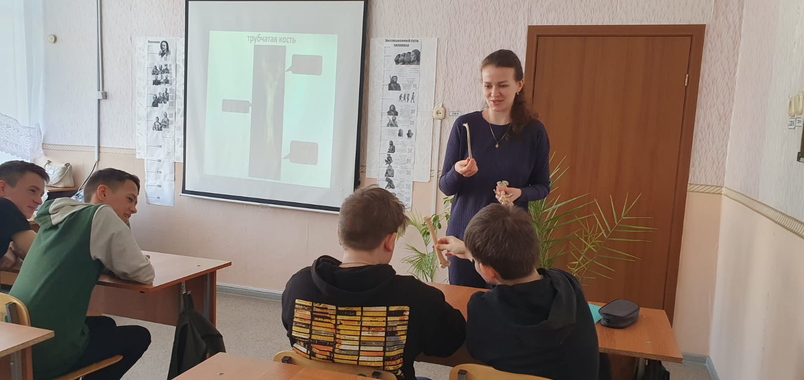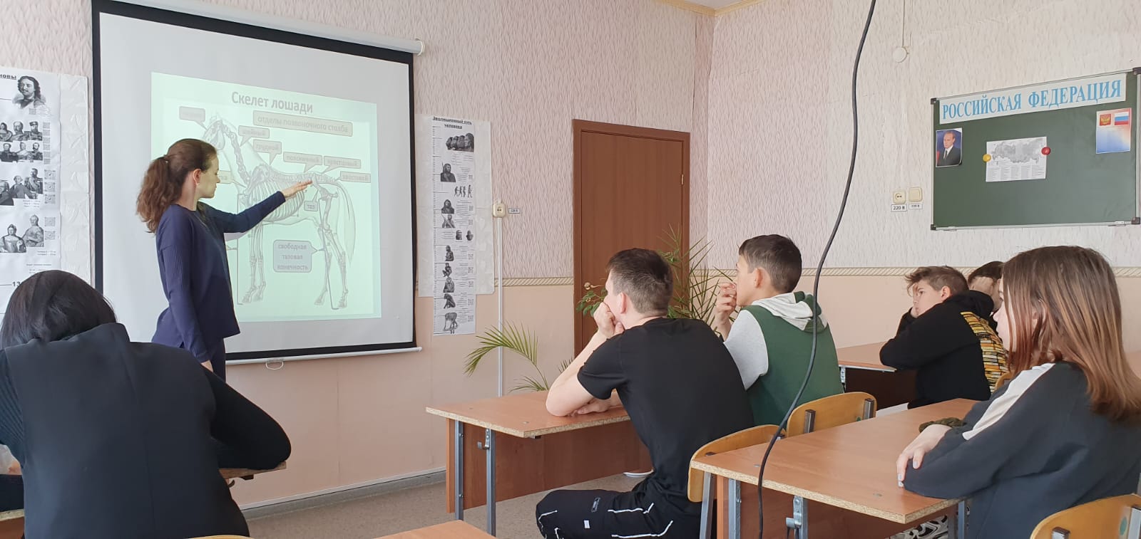 22 марта занятие с учащимися аграрного 7 класса в очном формате урок-практикум провели представители двух вузов: Нехайчик Фаина Михайловна, ассистент кафедры анатомии, патанатомии и гистологии КГАВМ и Егорова Ольга Алексеевна, научный сотрудник КГАУ. Фаиной Михайловной была представлена тема «Строение аппарата движения домашних животных». Преподаватель в доступной для детей форме осветила следующие разделы: функции органов движения, 3 основных вида движений, два аппарата движения. Более подробно рассмотрели строение отделов скелета на примере лошади, внешнее и внутреннее строение костей. По ходу занятия дети с интересом рассматривали препараты костей барана, которые были приготовлены студентами вуза согласно особой методике. Ольга Алексеевна представила тему «Корневые системы растений» - рассказала об эволюции корневых систем, основных функциях корня, подробно разобрала анатомическое строение корня – все его зоны, объяснила характерные отличия стержневой и мочковатой корневых систем. Вместе с детьми определяли растения с различным типом корневой системы. На практике дети рассматривали проросшие семена кукурузы, определяя разницу в развитии корней.