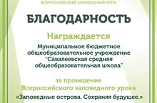 Всероссийский заповедный урок, посвященный 100-летию заповедной системы России, проведен в 1-4 классах МБОУ « Савалеевская СОШ» 27 февраля в рамках мероприятий 2017 Года особо охраняемых природных территорий (ООПТ) и Года экологии. В начале для учащихся было введено понятие «заповедник». Заповедник – это место, где охраняется все живое и неживое. Это замечательное место, где рыбы и птицы, звери и насекомые, травы и могучие деревья живут как в сказке, они знают, что добрые люди, которые работают в заповеднике не оставят их в беде, позаботятся о них.