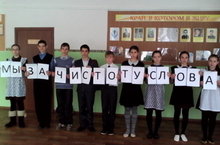 21 февраля в школе прошла акция "Мы за чистоту слова!" Учащиеся 8 класса показали сценку "Слова-колечки", ученица 5 класса прочитала стихотворение Г.Тукая "Туган тел"