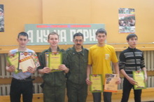 Подготовка молодежи к защите Родины немыслима без физической закалки. Военные знания, умения, навыки только в сочетании с физической подготовкой дают возможность успешно справляться с боевыми задачами. Поэтому не удивительно, что наши учащиеся показали высокие результаты в кустовых военно-спортивных соревнованиях «А ну-ка, парни!» и заняли первое место по всем видам. Участники нашей команды: Брагин Аркадий, Чернов Иван, Петров Петр и Рябов Данил.