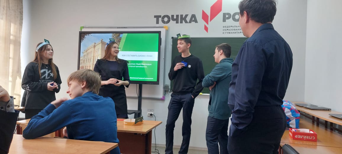 Нияз Азатович провел практическое занятие на тему «Как составить бизнес-план». Сначала была проведена игра "Знакомство с профессией", во время которой были выбраны 4 ученика. Они должны были по наводящим вопросам узнать, о какой профессии идет речь. Потом детей распределили по группам, и школьники должны были начать составлять бизнес-план, а для этого придумать, что они будут производить. Затем дети в интернете искали информацию о том, сколько людей покупают конкретно эту продукцию, решили кому продукцию будут продавать. В заключение в каждой группе был составлен свой финансовый план. Итогом занятия стала игра в карты, связанная с сегодняшней темой. Это была своего рода рефлексия.