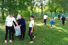 Сегодня учащиеся приняли участие в природоохранной акции "Зеленая Россия". Был организован сбор мусора возле родника, в парке села и в березовой аллеи возле школы.