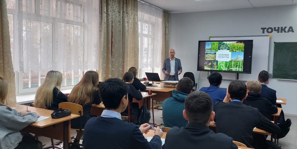 Занятие с учащимися аграрного 9 класса в очном формате урок-практикум провели представители двух вузов: Каюмов Рубин Расихович, доцент кафедры механизации КГАВМ (Казанской государственной академии ветеринарной медицины имени Н.Э. Баумана) и представитель Казанского государственного аграрного университета, Файзуллин Ренат Айратович, ассистент кафедры машины и оборудования в агробизнесе. Рубином Расиховичем была представлена тема «Технология заготовки сочных кормов». Были рассмотрены, какие культуры используются при заготовке сочных кормов, виды сочных кормов, что такое силос, сенаж и силаж. Ренатом Айратовичем была представлена тема «Машины для обработки почв». Было дано понятие «почва», рассмотрено, что нужно для плодородия почвы. Основным условием является правильная технология обработки почвы – вспашка, культивация, боронование, лущение, прикатывание, глубокое рыхление. Также было рассказано о способах обработки почвы - в зависимости от особенностей возделывания той или иной с/х культуры применяют: основную, поверхностную и специальную обработку почвы; и о системах обработки почвы - совокупности научно обоснованных приемов обработки почвы под культуры в севообороте.
