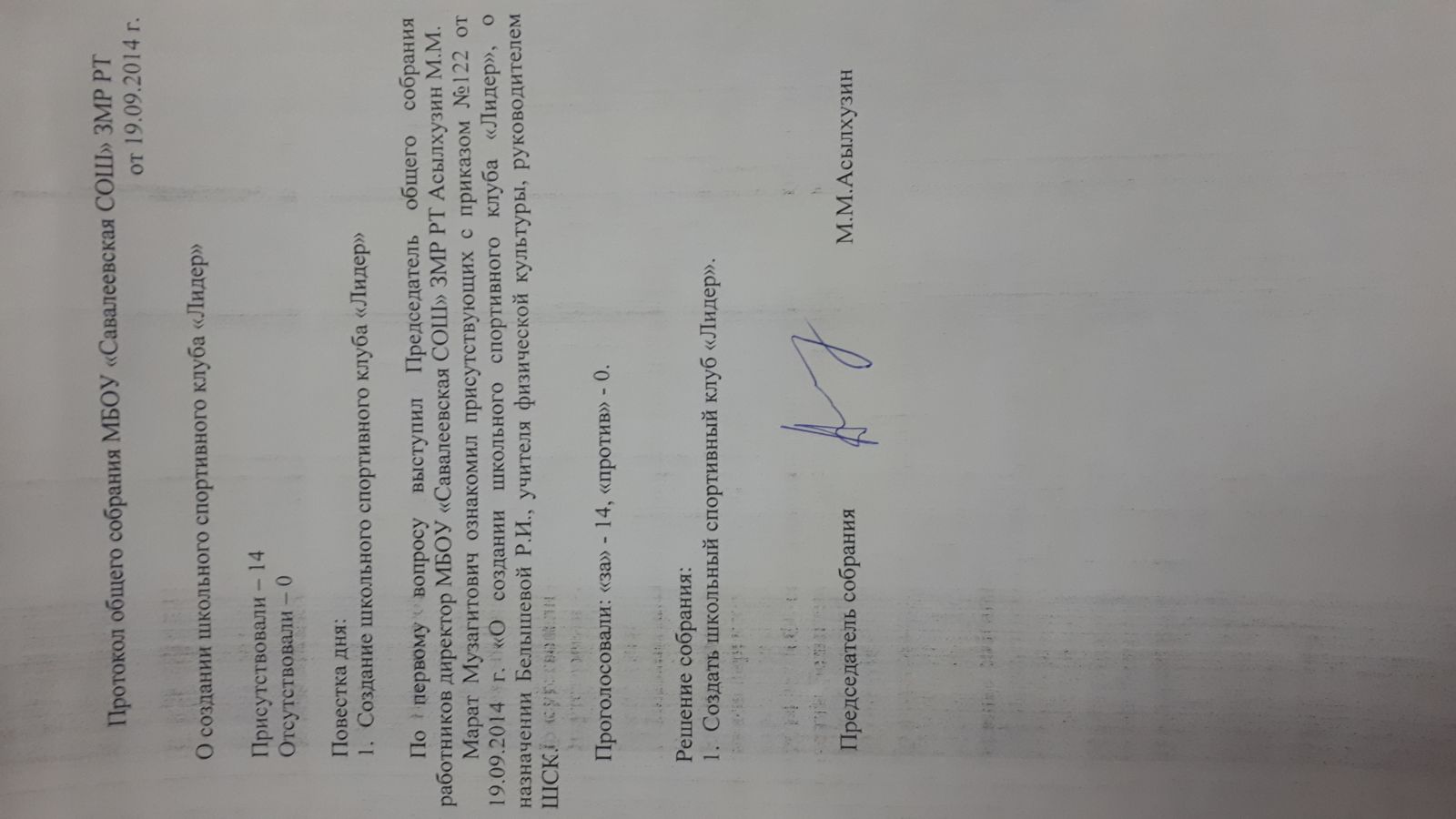 Протокол общего собрания МБОУ "Савалеевская СОШ" ЗМР РТ о создании ШСК