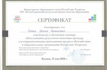 15 мая 2018 года учитель русского языка и литературы нашей школы Ильина Н.В. приняла участие в республиканском обучающем семинаре на тему "Использование результатов оценочных процедур для совершенствования образовательного процесса в образовательных организациях Республики Татарстан". На семинаре обсуждались результаты оценки качества образования в основной школе в 2017 году в образовательных организациях Республики Татарстан в соответствии с ФГОС основного общего образования.