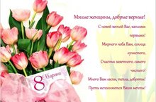 В этот весенний день желаем Вам улыбок, замечательного праздничного настроения, семейного счастья, благополучия, здоровья Вам и Вашим близким!