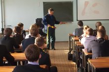 19 гоября государственнный инспектор Нижнекамского инспекторского отделения ФКУ "Центр ГИМС МЧС России по Республике Татарстан" Атласов В.А провел беседу с учащимися на тему "Меры предосторожности и правила поведения на тонком льду"