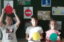 Сегодня среди 3-х классов прошло мероприятие "Это должен каждый нать". Дети повторили правила безопасности на дорогах, вспомнили дорожные знаки, играли в игру "Веселый светофор".
