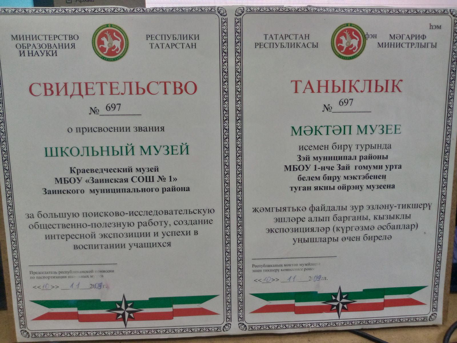 Свидетельство №697 О присвоении звания школьный музей.jpg