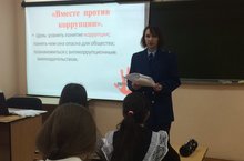 В рамках Международного дня борьбы с коррупцией, в целях воспитания правового сознания и повышения правовой культуры учащихся в 1-11 классах прошли единые уроки «Вместе против коррупции». В 10 классе совместно с учителем истории и обществознания Красильниковой Е.Н. старший помощник Заинского городского прокурора Абдуллина Айгуль Ульфатовна провела антикоррупционный урок о недопущении коррупционного поведения, подчеркнув актуальность этой проблемы в наше время. Лекция состояла в освещении вопросов противодействия коррупции и методов её предупреждения.