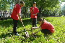 Волонтеры вместе с педагогом-организатором Пановой Н.А. приняли участие в традиционной республиканской природоохранной акции «День посадки леса». Ребята посадили саженцы елочек на пришкольной территории.