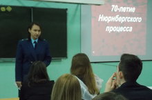 Сегодня у учащихся 11 класса состоялся открытый урок, посвященный 70-летию Международного военного трибунала в Нюрнберге с приглашением сотрудника прокуратуры. Урок провели учитель истории и обществознания Красильникова Е.Н. и старший помощник прокурора ЗМР А.У.Абдуллина. В рамках урока ребята смотрели и обсуждали фильм "Нюрнберг. 70 лет спустя", читали стихи Мусы Джалиля. Мероприятие получилося поучительным и интересным. Такие уроки пройдут в каждом классе.