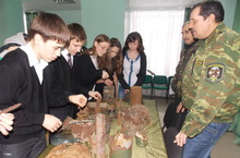 В рамках Дня Героев Отечества была организованна встреча учащихся 9-х классов с руководителем ФОРПОСТ Алексеевым Алексеем Васильевичем и руководителем военно-патриотического клуба «Гвардия» и организатором переносного музея раскопок Никифоровым Виктором Михайловичем. Виктор Михайлович рассказал ребятам о деятельности клуба «Гвардия», основное направление которого увековечение памяти воинов, погибших при защите Отечества. Алексеев А.В. и Никифоров В.М. показали экспонаты, переносного музея раскопок. Экспозиция, составленная из личных вещей, фрагментов оружия, военной амуниции, писем и т.д., которые найдены нашими ребятами-поисковиками на раскопках мест Великих сражений ВОв, вызвала непредельный интерес у учащихся.